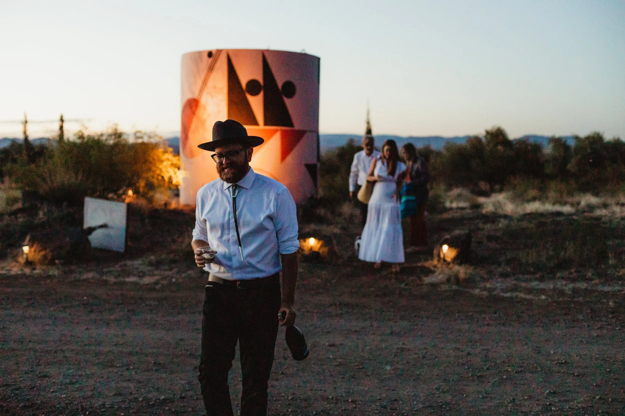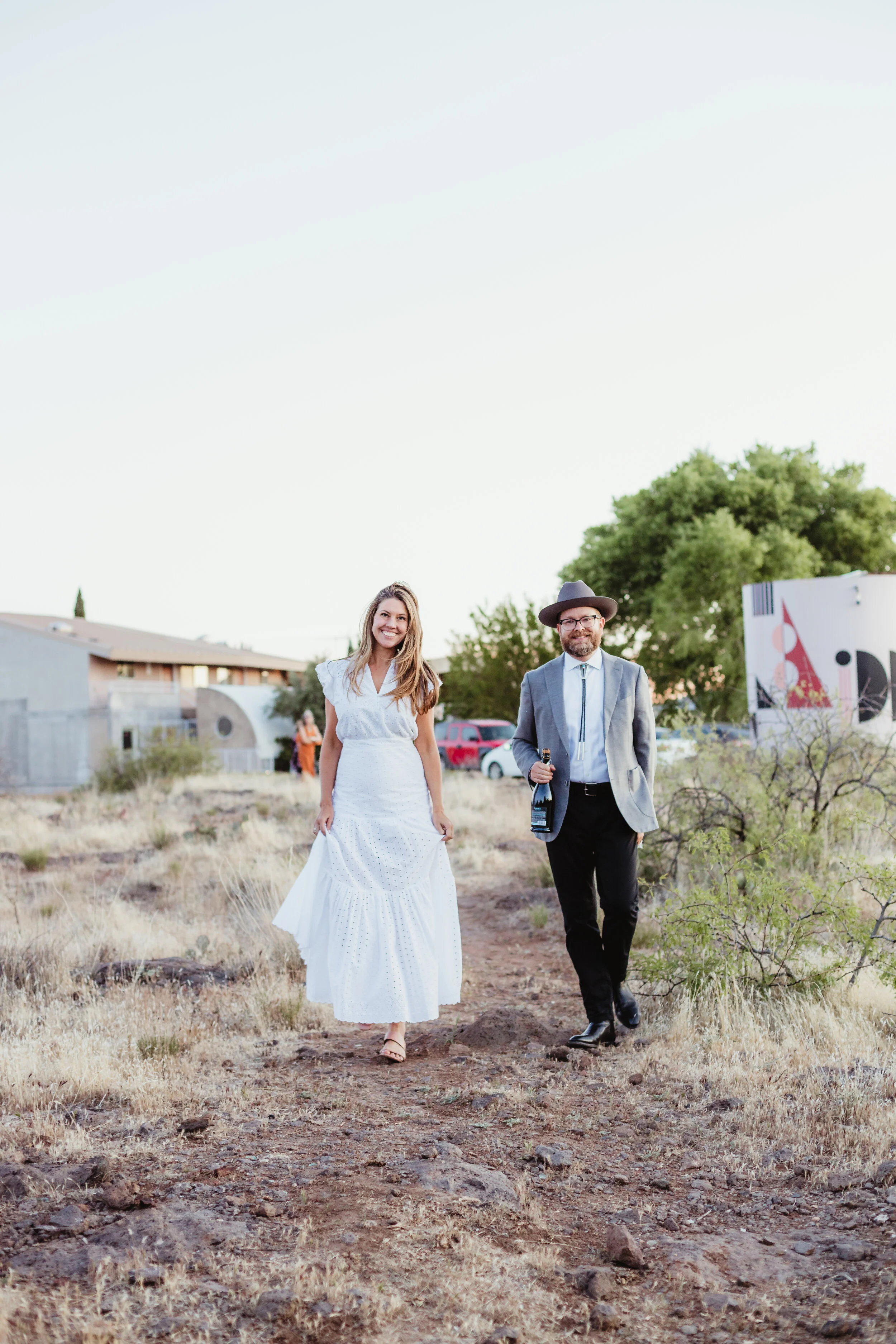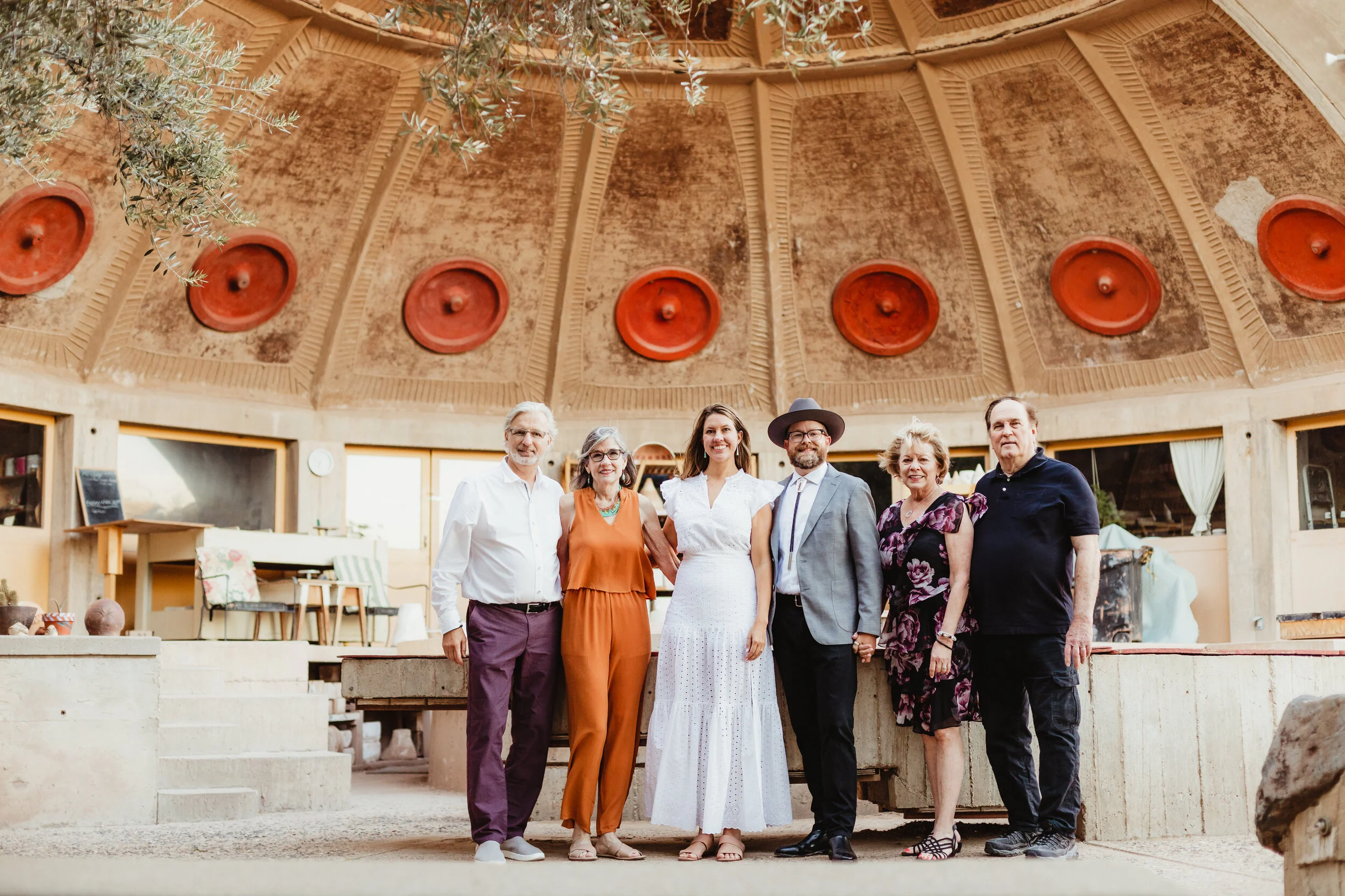 Sophia’s parents traveled to the deserts of Arizona — Drew’s home state — for a pop-up ceremony at Arcosanti, a creative community housed in an architecturally imaginative village created by Italian futurist Paolo Soleri.