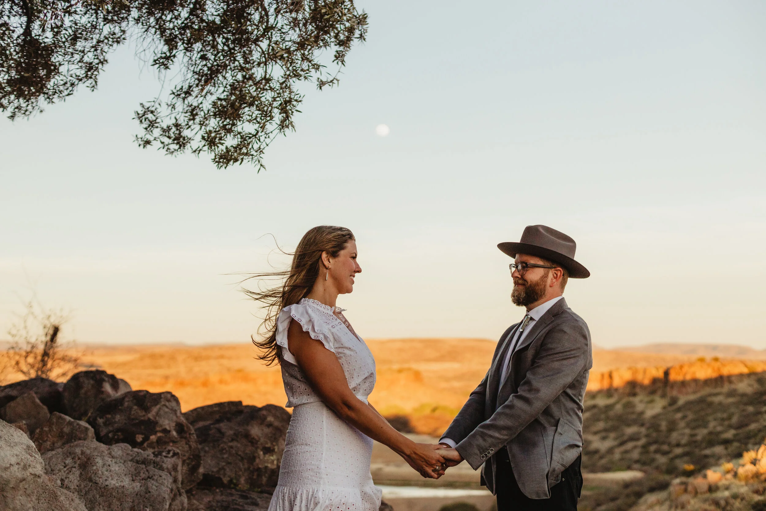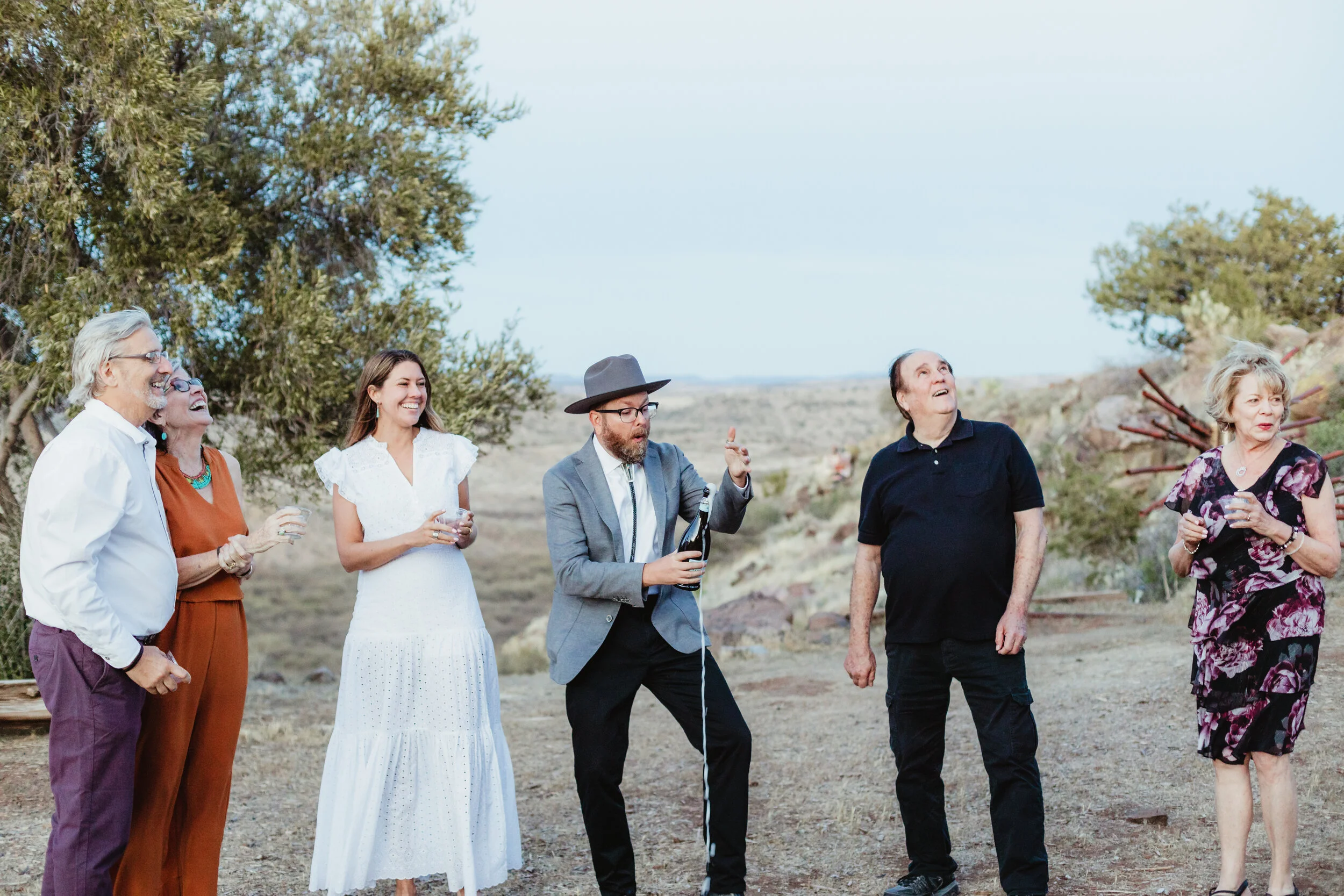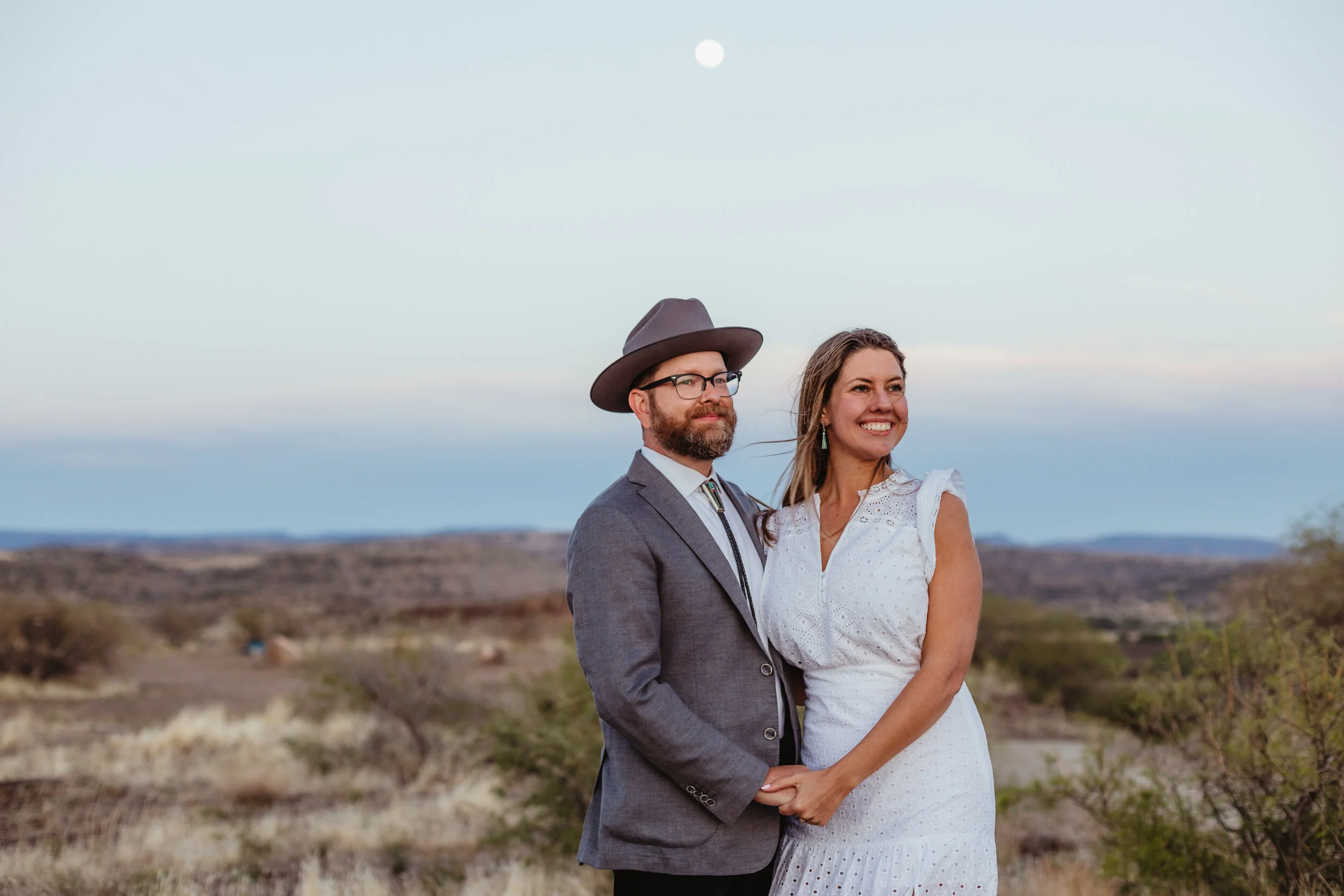 Sophia’s parents traveled to the deserts of Arizona — Drew’s home state — for a pop-up ceremony at Arcosanti, a creative community housed in an architecturally imaginative village created by Italian futurist Paolo Soleri.